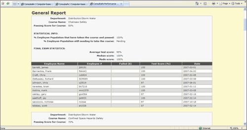 As part of our Intelli-interactive training™ platform, test score results can be automatically uploaded onto our server. All you have to do is to log onto your account at www.ConsulSafe.com/pr to view the training status of your trainees. From this webpage you will be able to track the training progress of all your trainees.